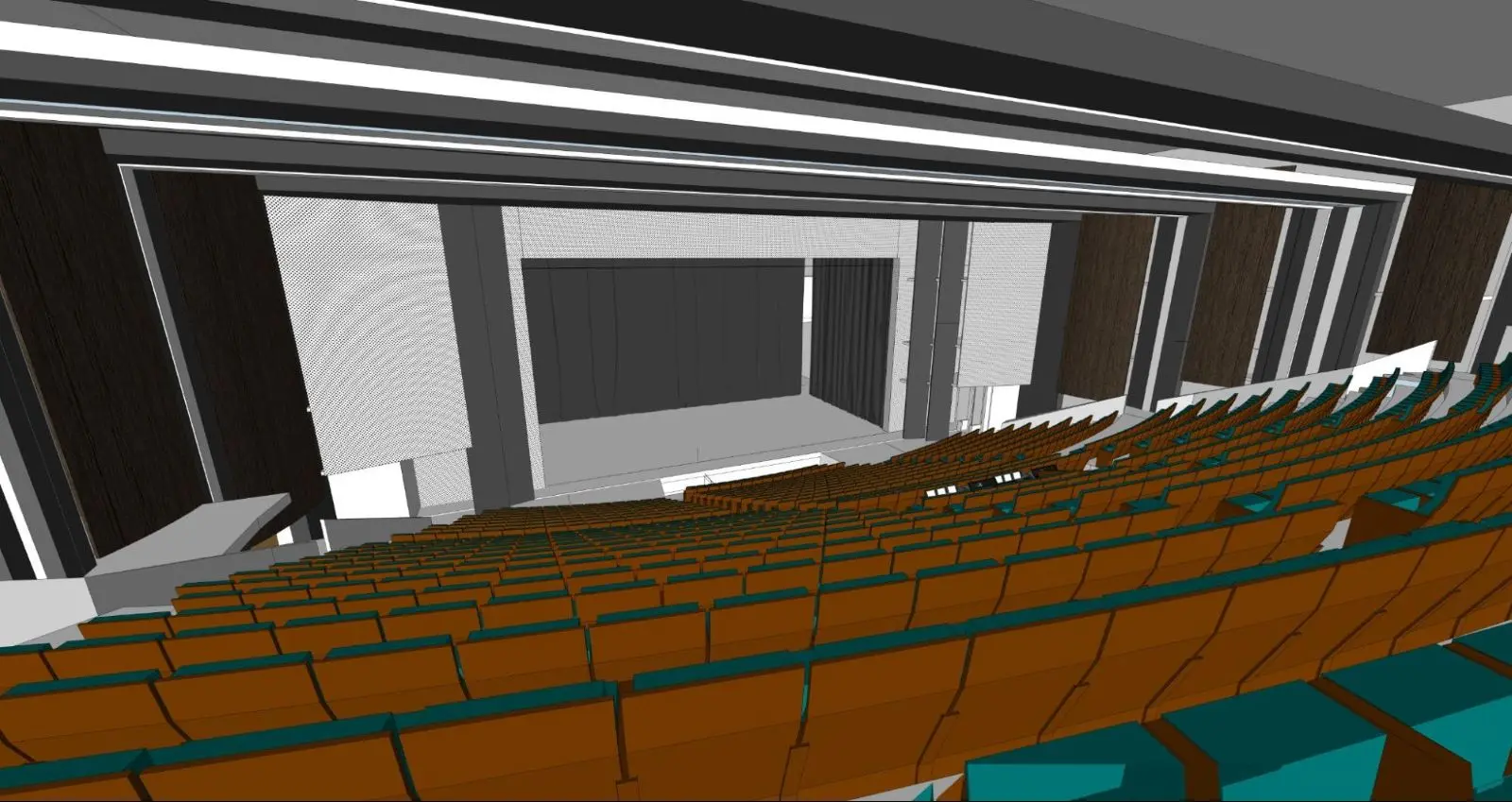 ภาพจำลองพื้นที่การแสดงของโรงละครนาฏศิลป์แห่งชาติชาโยต์จาก SketchUp ภาพโดย Clé Millet