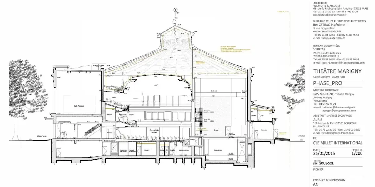 Clé Millet เสนอแนวทางในการขยายโรงละครเพื่อเพิ่มขนาดเวที ในขณะเดียวกันก็จัดให้มีที่นั่งที่สะดวกสบายสำหรับผู้ชมจำนวนเท่าเดิมที่เคยชมการแสดงนาฏศิลป์ที่นี่มาเกือบศตวรรษ โดยไม่ต้องสร้างโครงสร้างเพิ่มเติมเหนือพื้นดิน แบบที่พวกเขาเสนอขยายโรงละครโดยการขุดลงไปในเนินเขาหินปูน โดยใช้แบบจำลอง SketchUp เป็นแบบอ้างอิงสำหรับงานที่เสนอ พวกเขานำเสนอวิธีการขุดอย่างปลอดภัยพร้อมทั้งปรับปรุงความแข็งแรงของโครงสร้างอาคารใต้ดิน